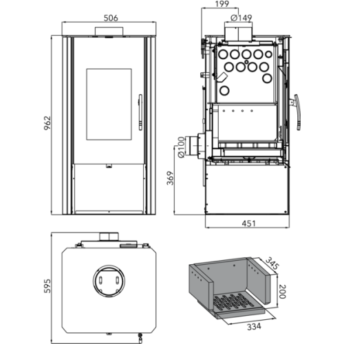 • Vývod kouřovodu: vrchní, zadní Ø 150 mm